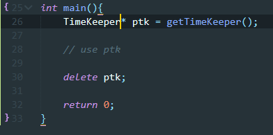 TimeKeeper를 쓰는 사용자들은 시간 정보에 접근하고 싶은데, TimeKeeper에서 시간 계산을 어떻게 하는지는 관심이 없고, 그냥 시간 정보에 접근만 하고 싶다. => 이럴 때 어떤 시간기록 객체에 대한 포인터를 반환하는 용도로 팩토리 함수(factory function, 새로 생성된 derived class 객체에 대한 base class 포인터를 반환하는 함수) 를 만들어 두면 딱 좋을 거 같다.(getTimeKeeper()) [C++] 팩토리 함수 :: IT's me (tistory.com) 참고