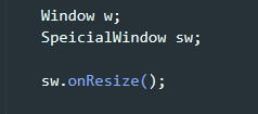 Window로 캐스팅했으니, 동작하는 onResize()는 Window의 것이 호출되야 할 것이다. 근데 함수 호출이 이루어지는 객체가 현재의 객체가 아니다!!